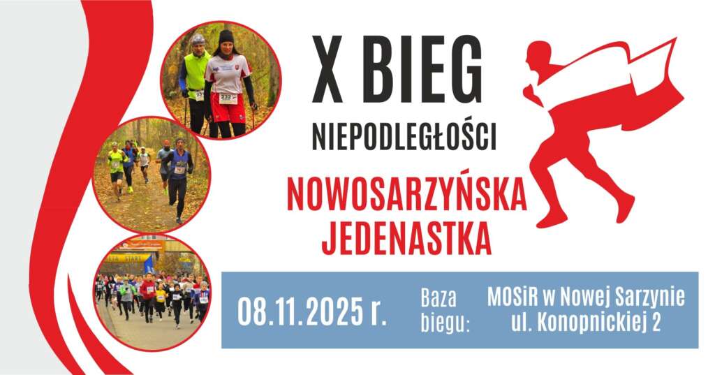 Aktualności Komunikaty Społeczność lokalna Sport Wydarzenia 8 listopada Bieg Niepodległości po raz dziesiąty Przez Redakcja Wysłany dnia 22 października 2025 1 min read 0 0 683 Podziel się Facebook Podziel się Twitter 8 listopada Bieg Niepodległości po raz dziesiąty W decydującą fazę wchodzą przygotowania do jubileuszowego, dziesiątego już Biegu Niepodległości „Nowosarzyńska Jedenastka”. Organizatorzy działają od drugiej połowy sierpnia, a dotychczasowe czynności skoncentrowane były na opracowaniu planu zabezpieczenia, uzyskaniu niezbędnych zezwoleń, związanych z czasowym zajęciem dróg publicznych, nawiązaniu kontaktów ze współorganizatorami i partnerami medialnymi czy opracowaniu wzorów medali dla wszystkich uczestników i statuetek dla najlepszych. Tegoroczne zawody przebiegać będą analogicznie jak ubiegłoroczne – sportowcy rywalizować będą w biegach młodzieżowych na 650 m (roczniki 2013 i młodsi) i 1,5 km (roczniki 2010-2012), dorośli w biegu głównym na 11 km i nordic walking na 7,5 km. Do biegu głównego i nordic walking zapisać się można za pośrednictwem portalu dostartu.pl (https://dostartu.pl/x-bieg-niepodleg-osci-nowosarzynska-jedenastka-v14725), a do biegów młodzieżowych – u nauczycieli wychowania fizycznego w szkołach. Informacje na temat biegu publikowane są na profilu wydarzenia na facebooku: https://fb.me/e/3GbEpMdaF JW
