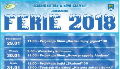 Ferie w Ośrodku Kultury Ośrodek Kultury w Nowej Sarzynie przygotował dla dzieci i młodzieży szereg atrakcji. W planie jest projekcja filmu 3D, bajki dla dzieci, zajęcia plastyczne, warsztaty kulinarne i teatrzyk. Czytaj więcej
