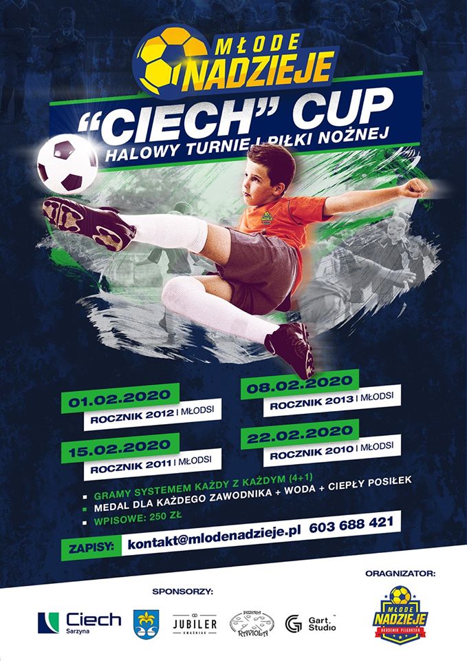 Aktualności Komunikaty Sport Maraton turniejów Przez Redakcja Wysłany dnia 29 listopada 2019 25 po drugie przeczytaj 0 0 3,156 Podziel się Facebook Podziel się Twitter Młode Nadzieje Maraton turniejów organizowanych przez Akademię Piłkarską „Młode Nadzieje”. Serdecznie zapraszamy wszystkie zainteresowane kluby sportowe, akademie, stowarzyszenia, szkoły podstawowe i przedszkola. Zapisy na kontakt@mlodenadzieje.pl lub pod nr. telefonu 603 688 421. Ze sportowym pozdrowieniem – Grzegorz Sroka.